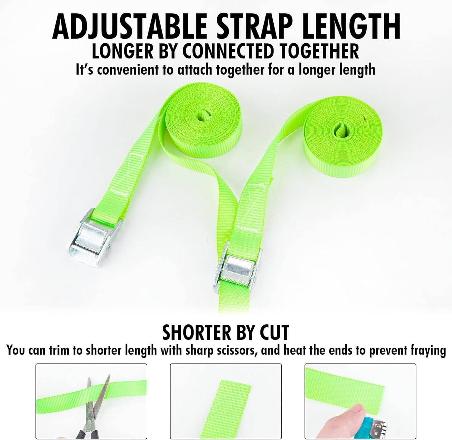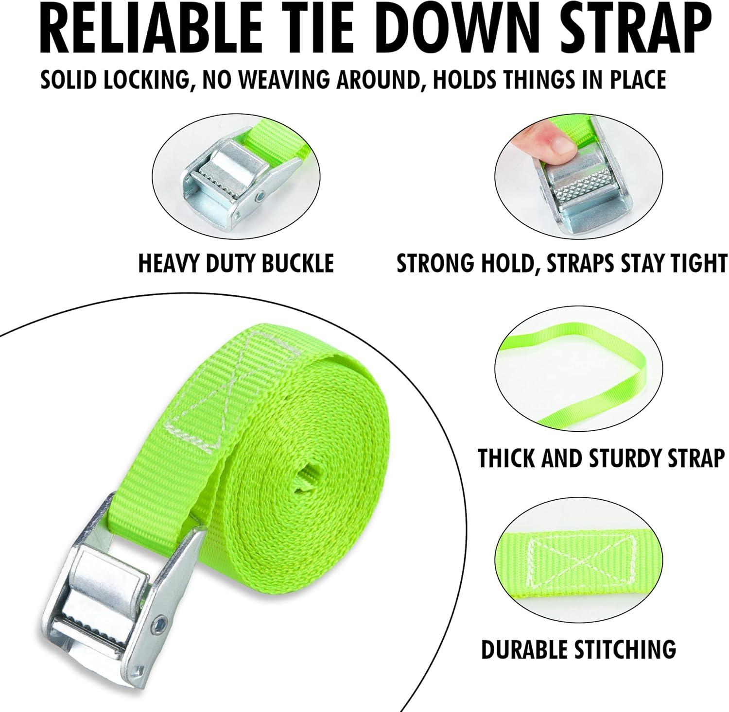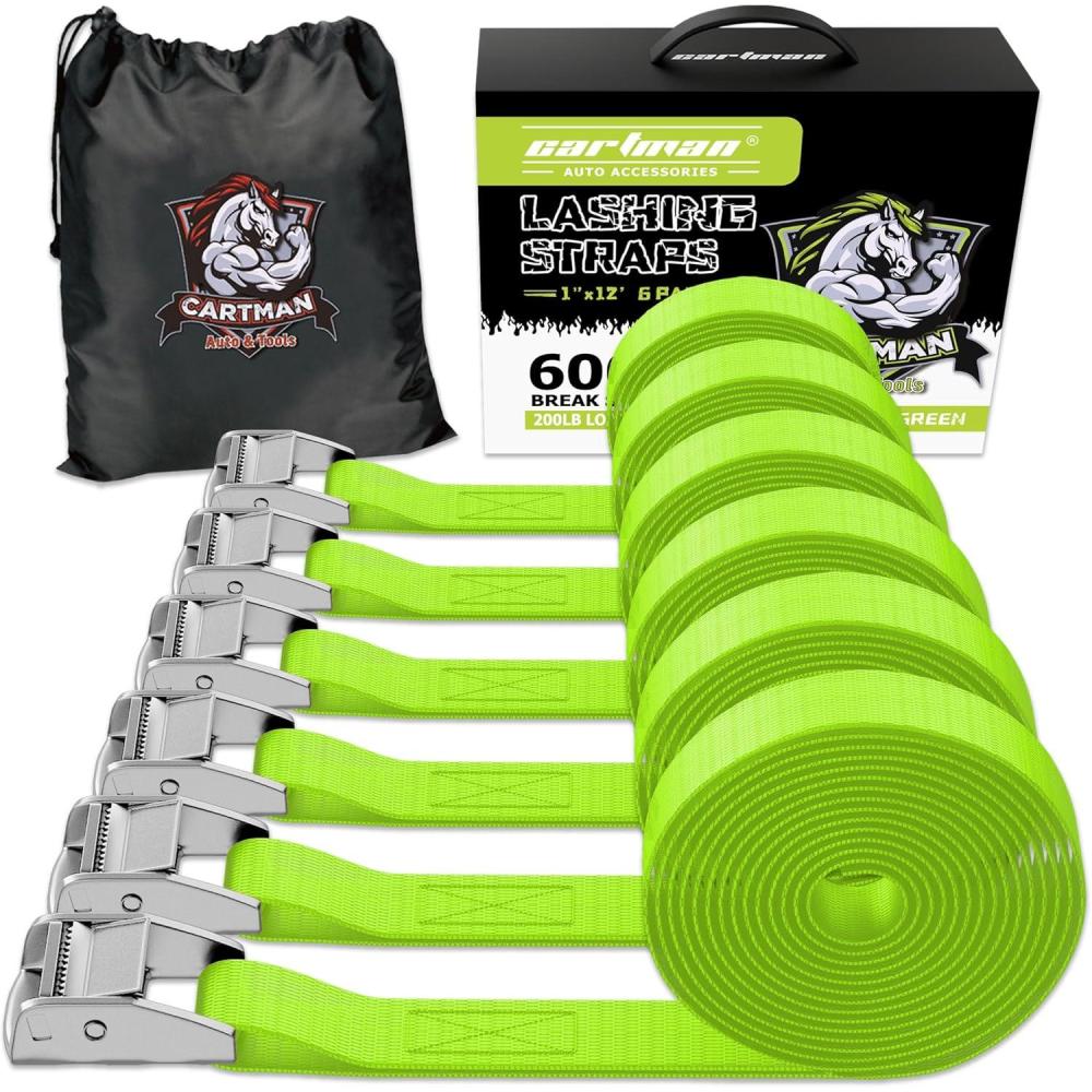 Cartman 1″ x 12′ Lashing Straps Cargo Tie-Down Strap Up to 600lbs, 6pk in Carry Bag, Black(Green)