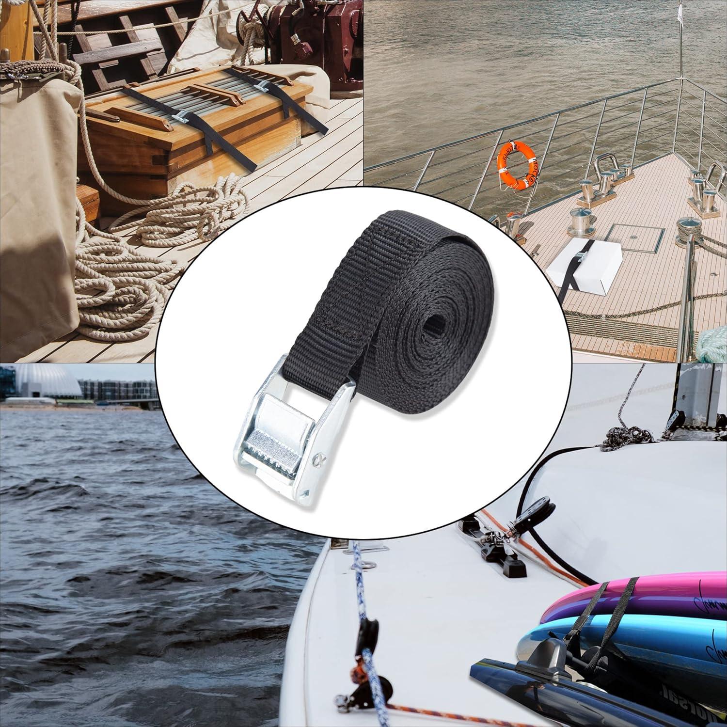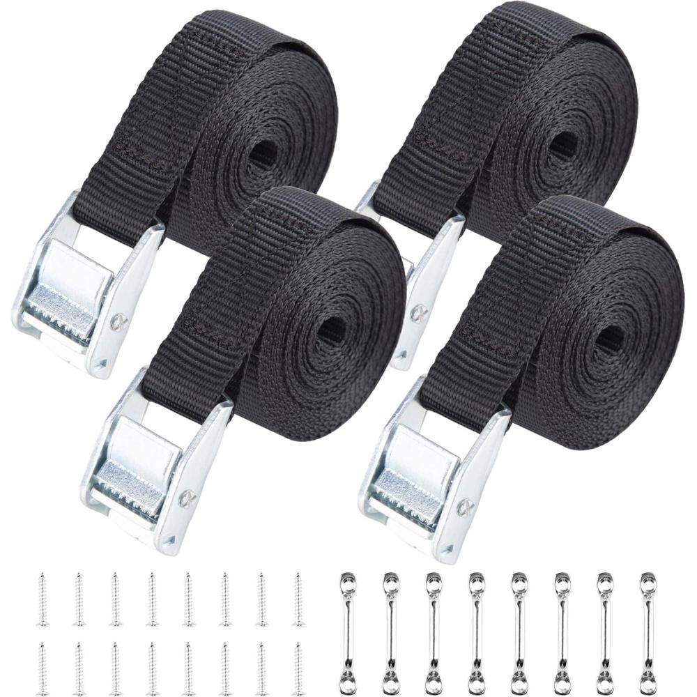 Cartman 12ft Battery Tie Down Strap, Battery Box Hold Down Lashing Straps Kit with Stainless Steel Deck Loop Mounts to Prevent Equipment from Slipping, 4PK(4PK)