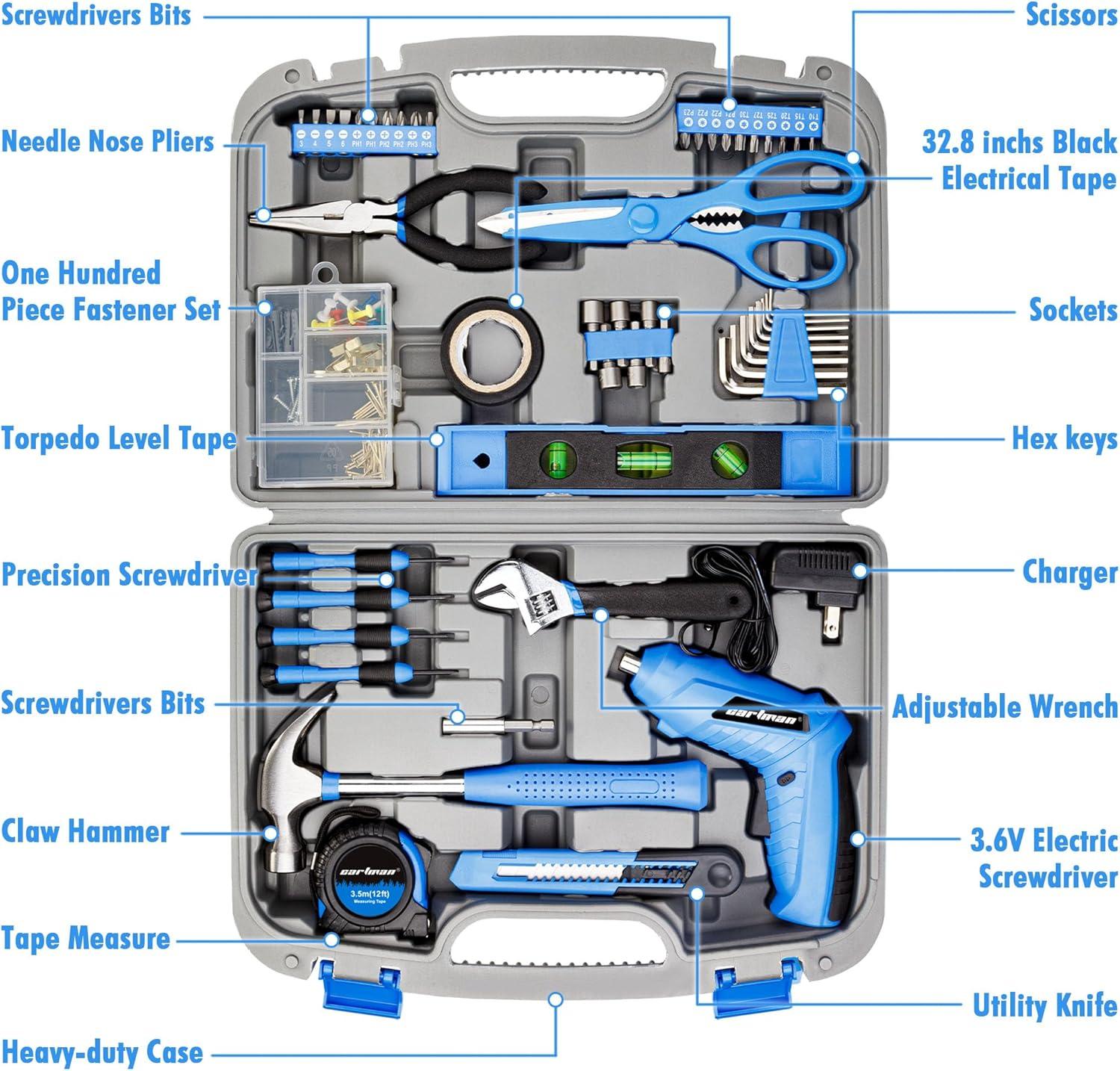 Cartman 149 Piece Tool Set General Household Hand Tool Kit with Cordless Screwdriver Blue(149 PC)
