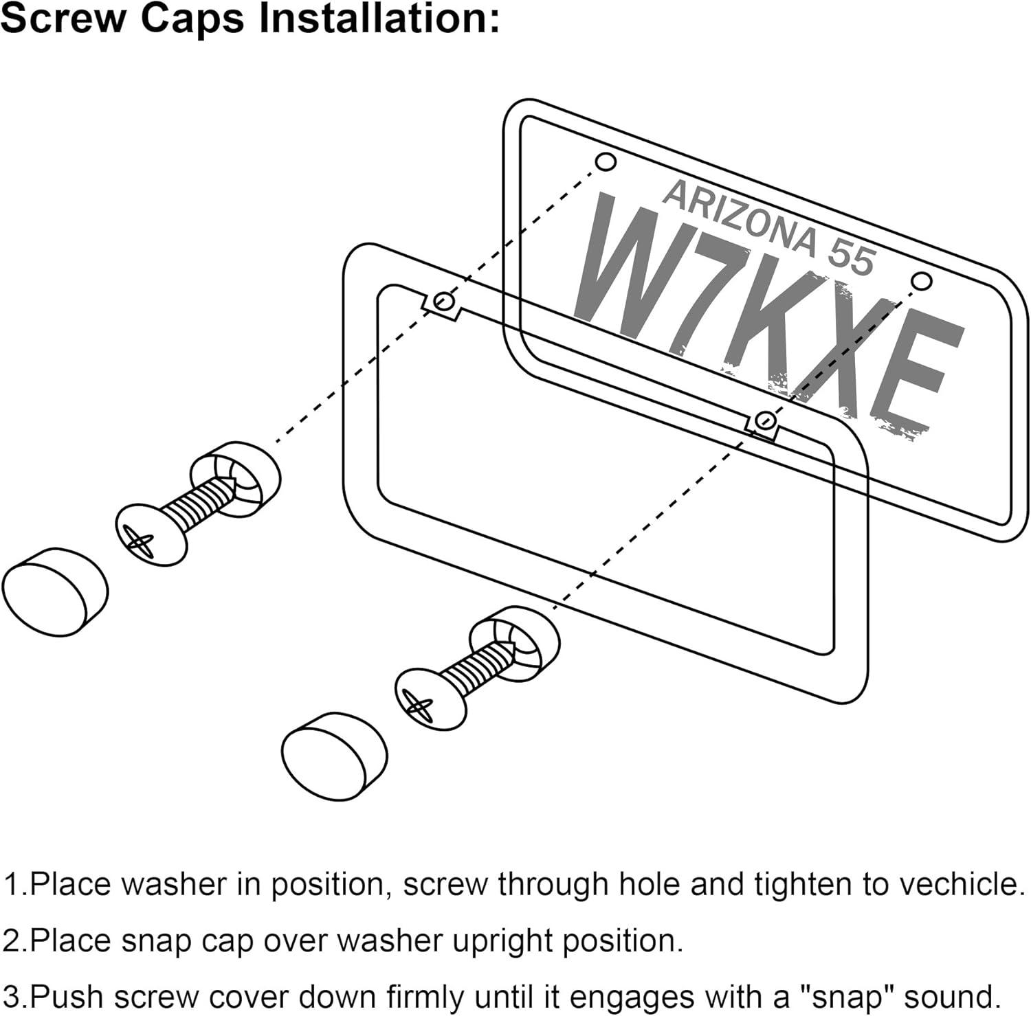 Simple installation with vehicle's existing 2 license plate fasteners (screws and matching screw covers included)