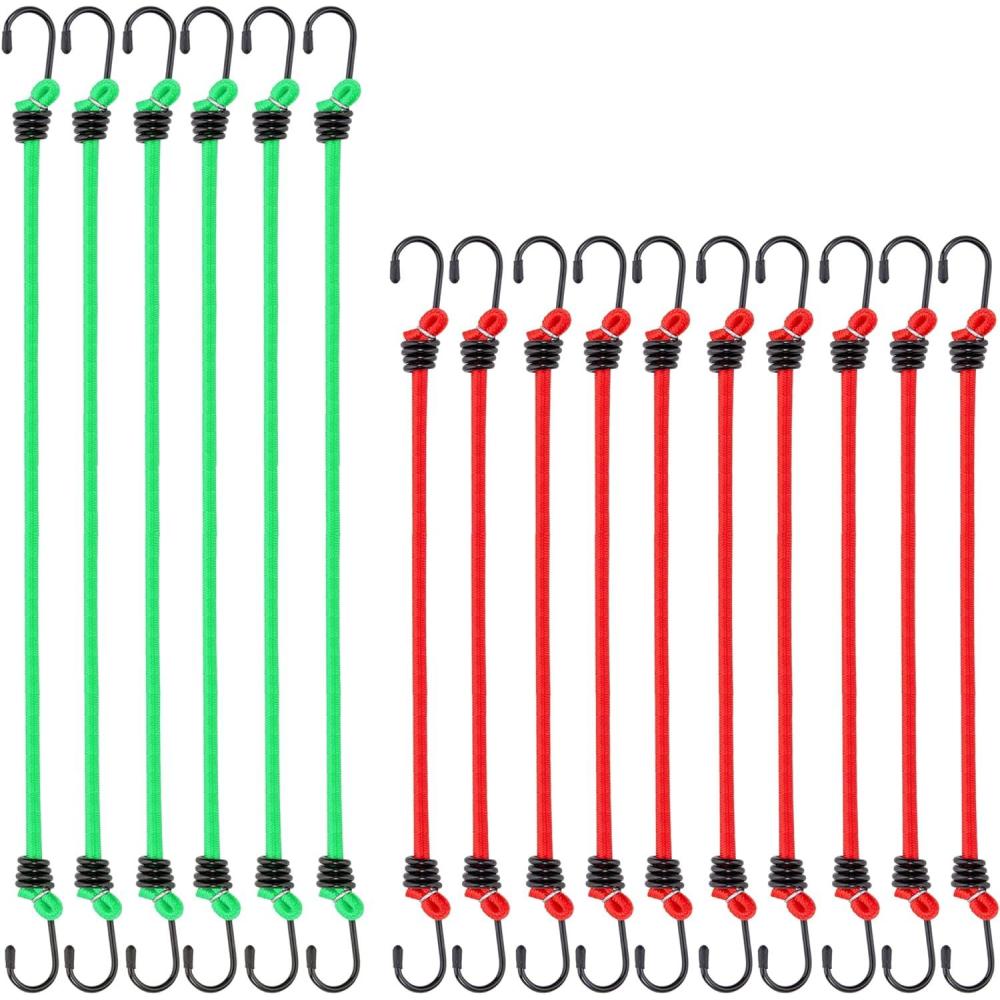Assorted sizes: 6pc 18”, 4pc 24”, 2pc 32”, 2pc 40” bungee cords in 8 mm diameter, 6pc 10″mini cords, 8pc canopy ties and 4pc tarp clips.