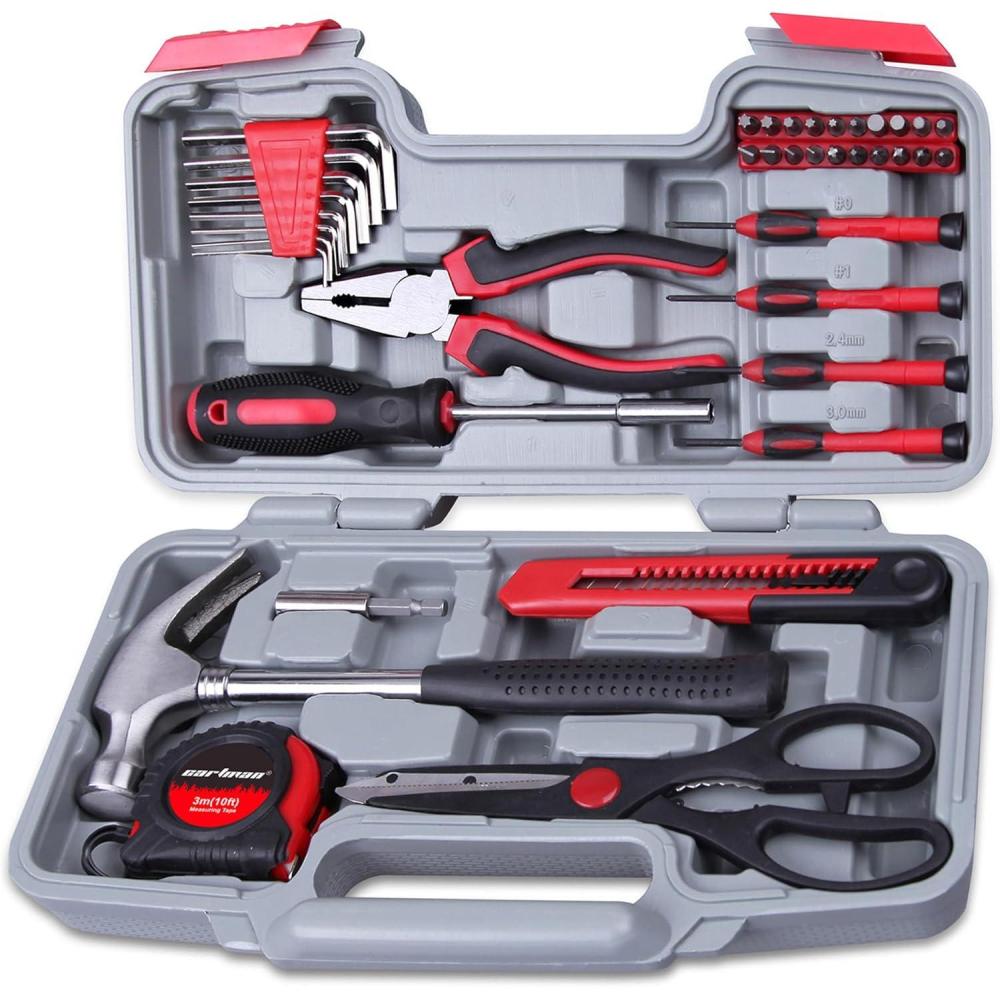 CARTMAN 39-Piece Home Tool Set Kit, Essential Household Hand Tools with Plastic Storage Case, Red(Red)