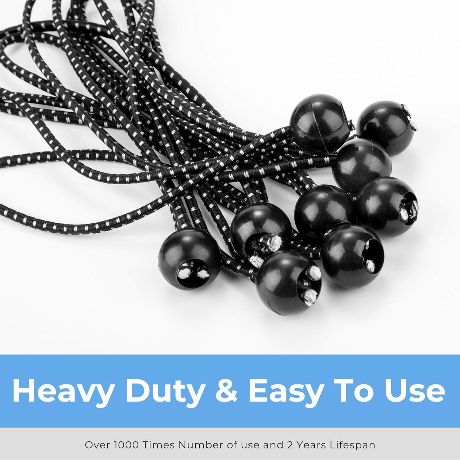 The bungee cords with balls provides constant tension and a firm hold which be used for tent, tarp, canopy, garage roof, wall pipe, screen, canopy shelter,fishing rods,etc.it's also as a practical way to attach tools to your fishing vest.