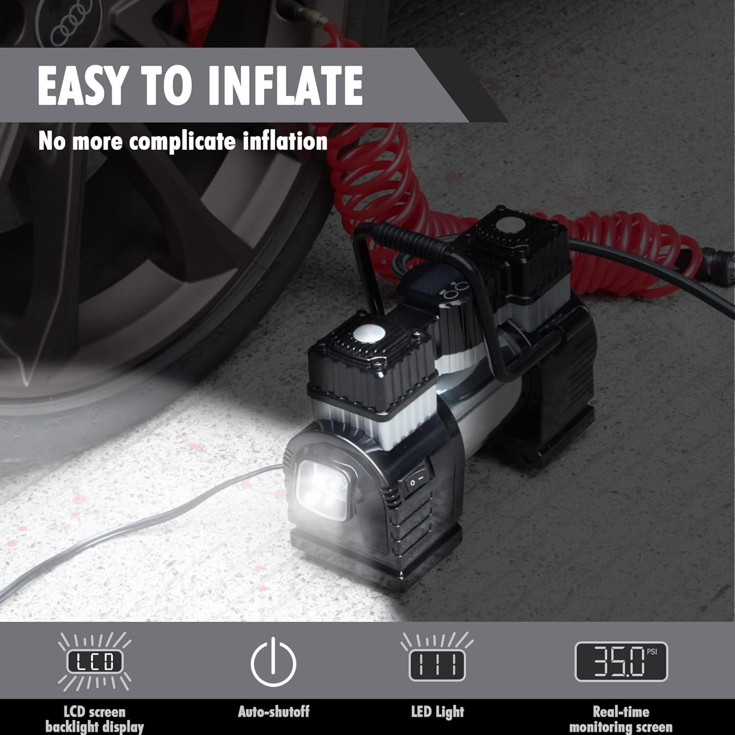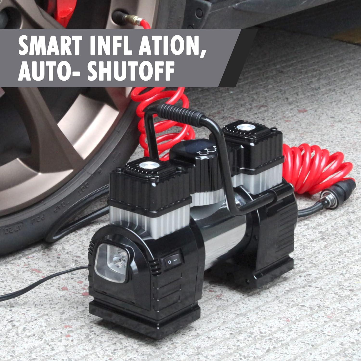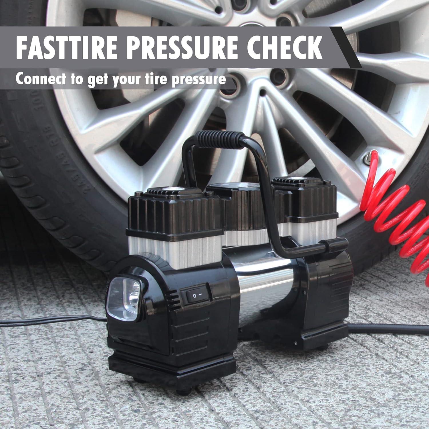 CARTMAN Dual Cylinder DC 12V Air Compressor for Car, Heavy Duty Portable Tire Inflator,Tire Pump 120PSI with LED Light for Auto,Truck,SUV, RV,Balls etc (Black)