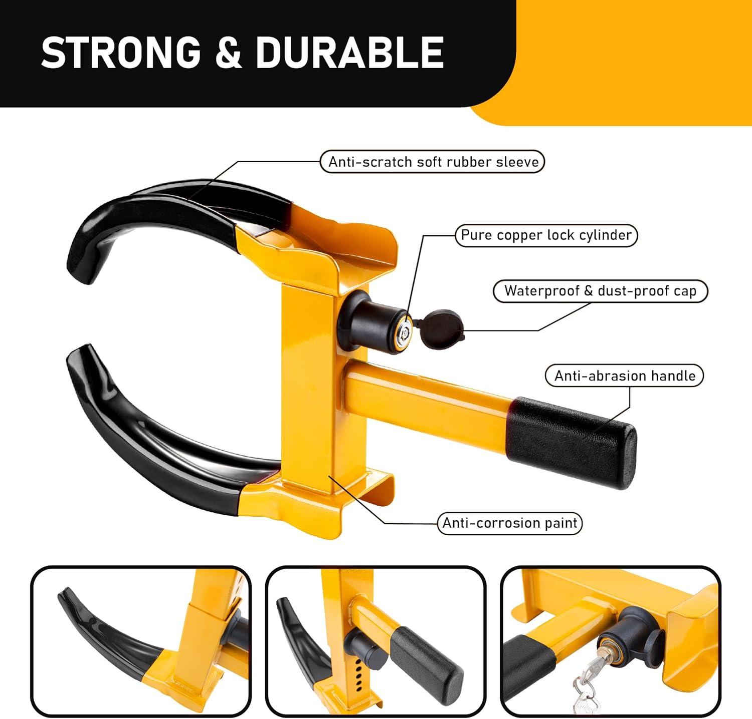 Our wheel clamp lock body is made of high strength steel plate, which can be used for a long time. The surface is soft coated, which will not damage your car wheel.