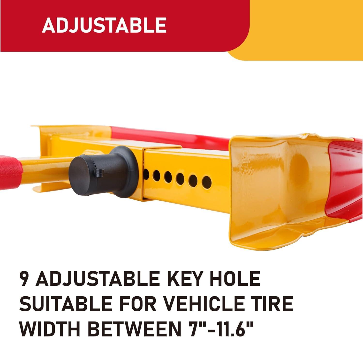 Universal wheel locks can be adjusted to fit 7 to 11 inch width tires for cars, camper, trucks, trailers, motorcycles, ATV's, RV's, golf carts, etc.