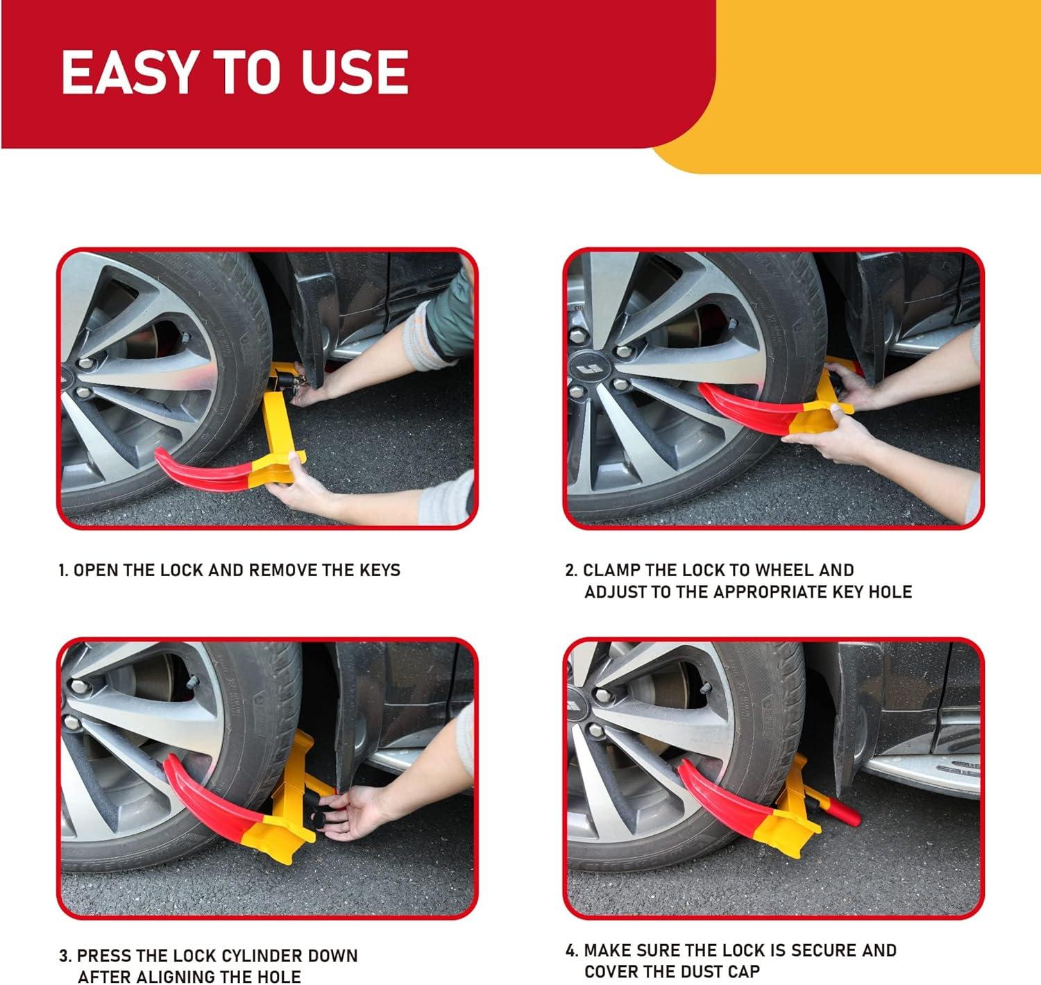 The bright yellow and red color is a fine choice for maximum visibility in both day and night. Greatly reduces the possibility of being targeted by thieves and protects your car security effectively.