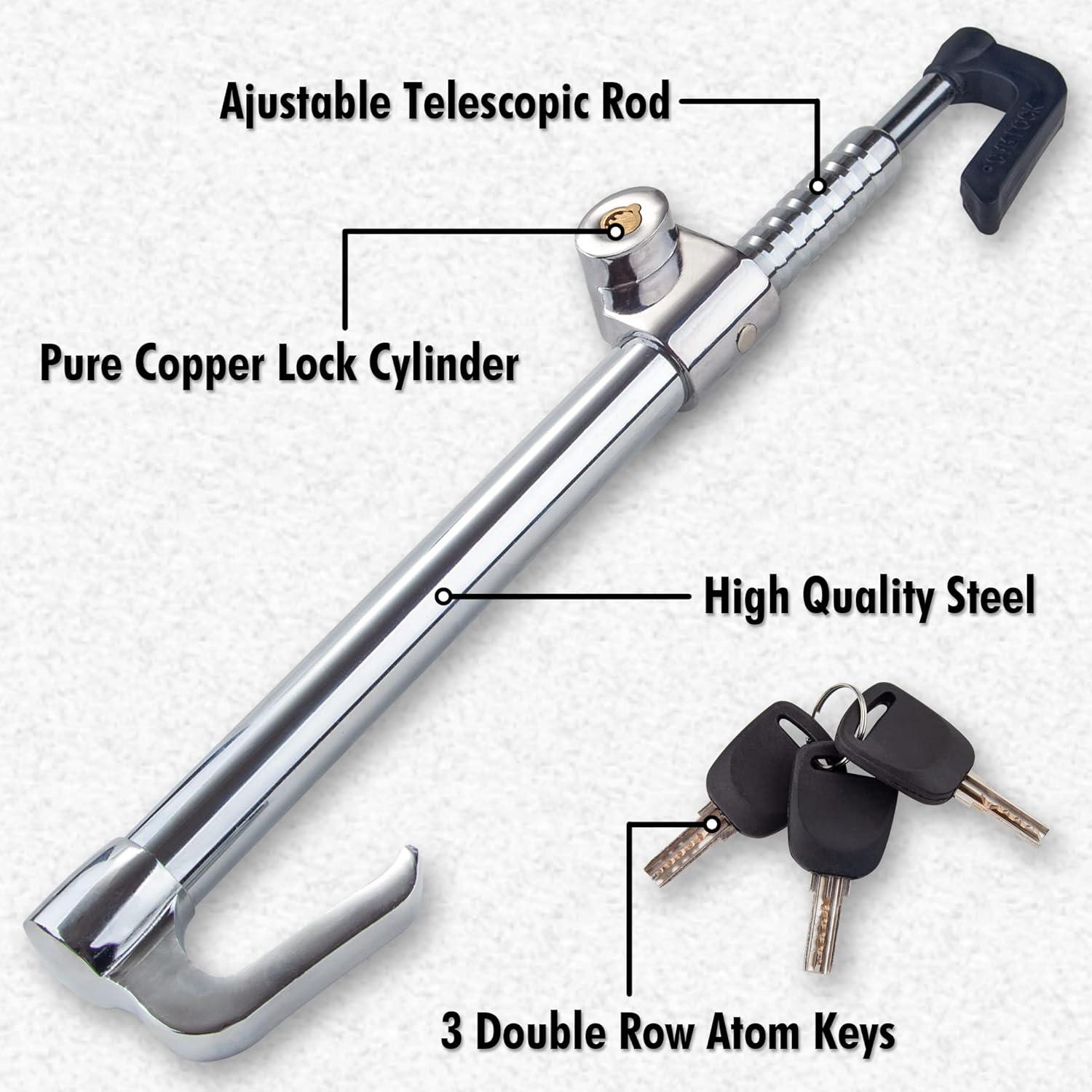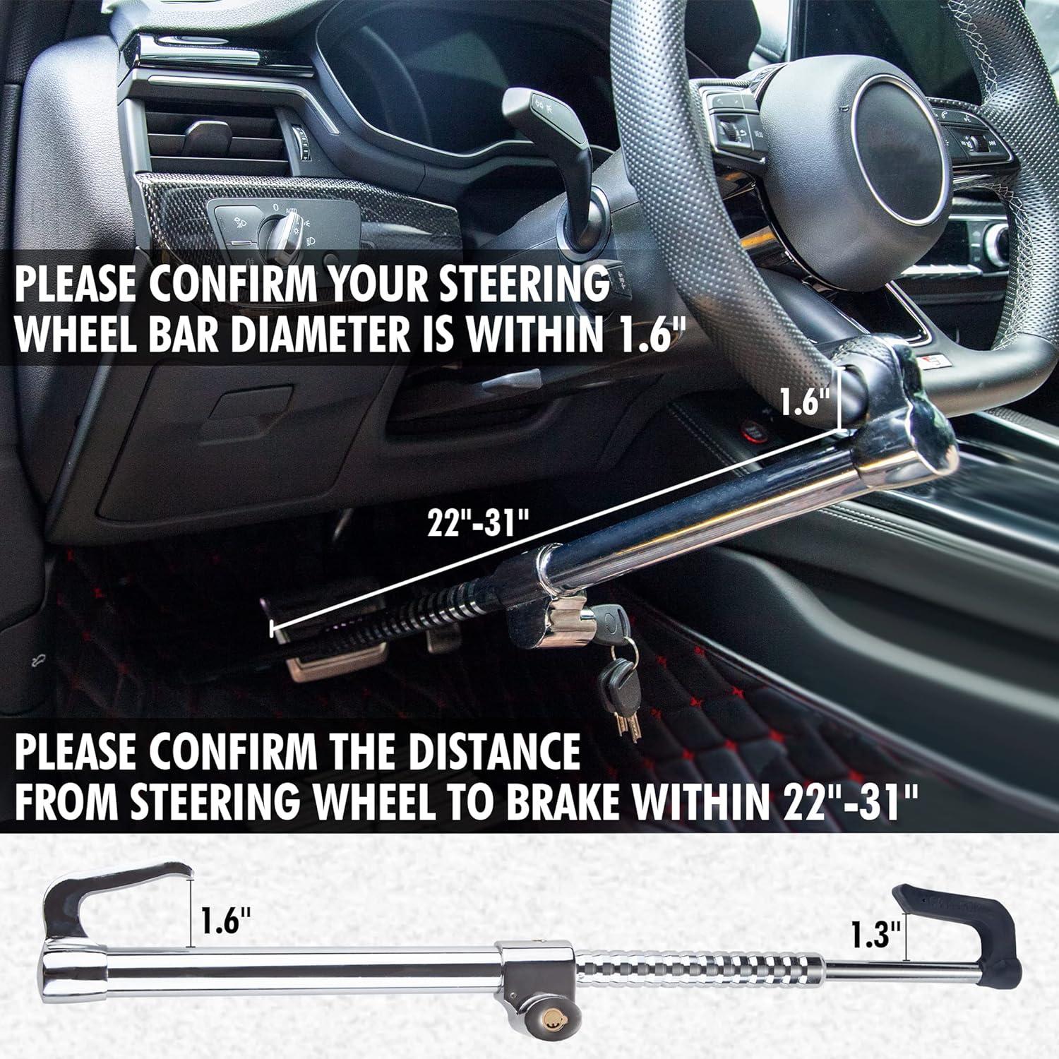 GREAT SECURITY – The pure copper lock cylinder of our steering wheel locking device increases the strength and prevent various lock picking tools and violent unlocking.