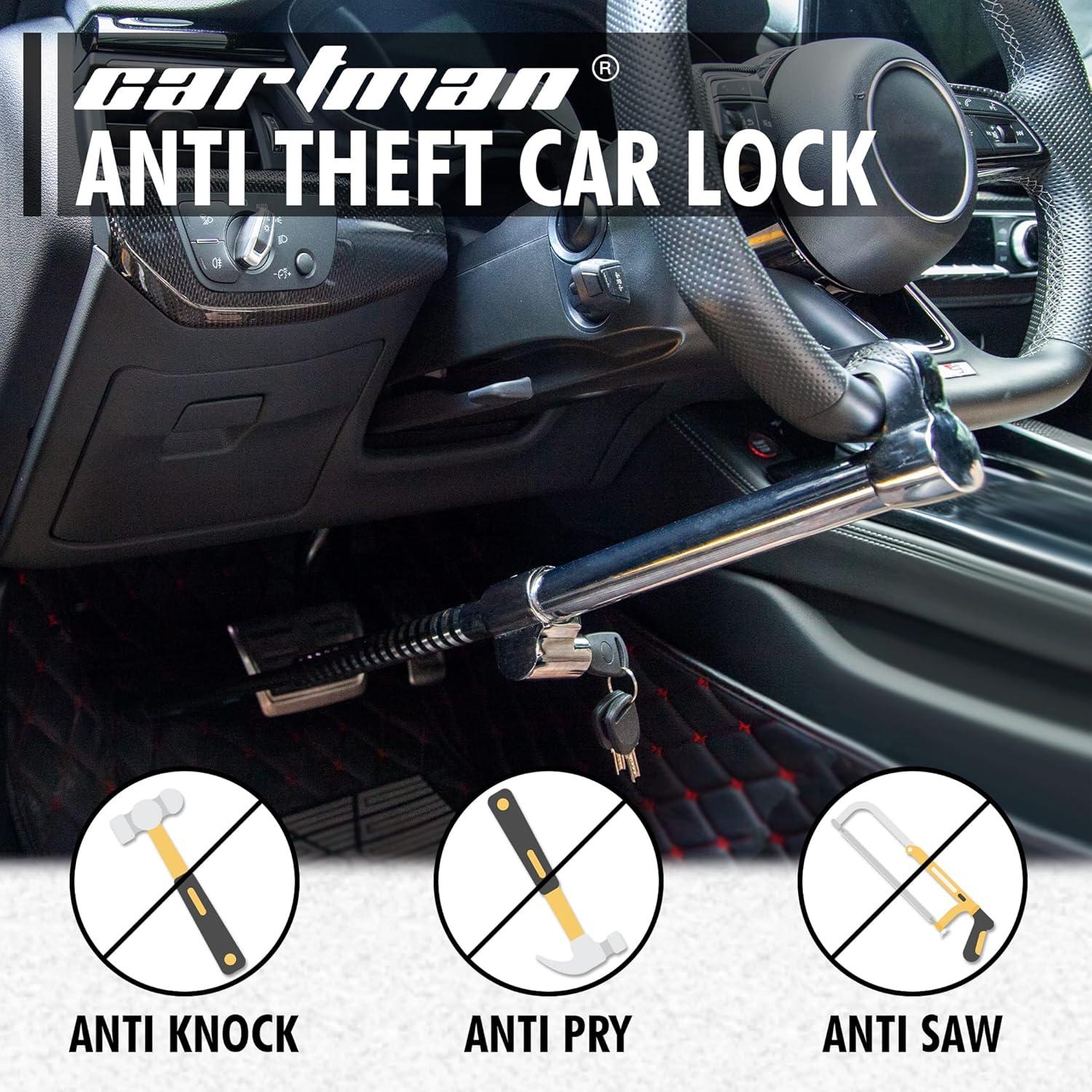 CARTMAN Steering Wheel Lock Bar Heavy Duty Anti Theft Security Brake Pedal Lock with Adjustable Length 3 Keys Included Silver