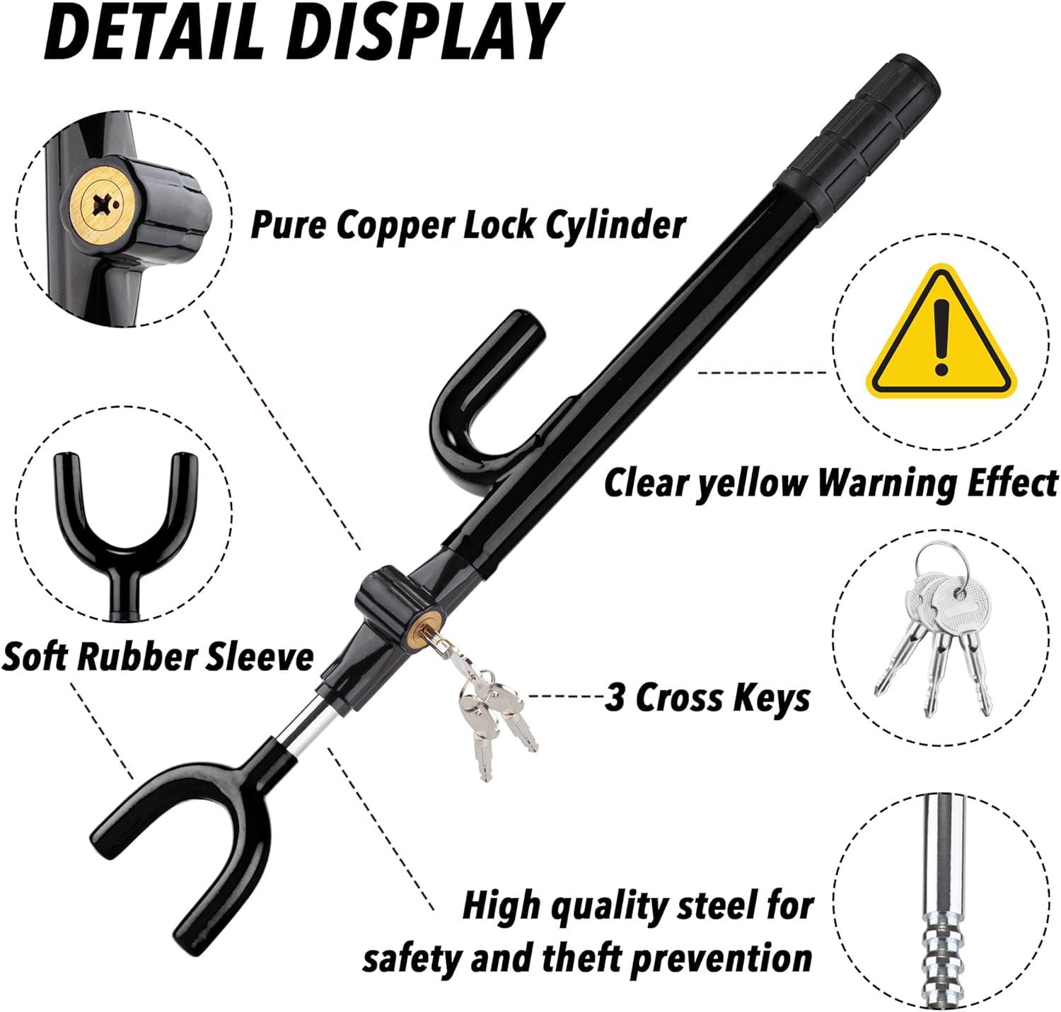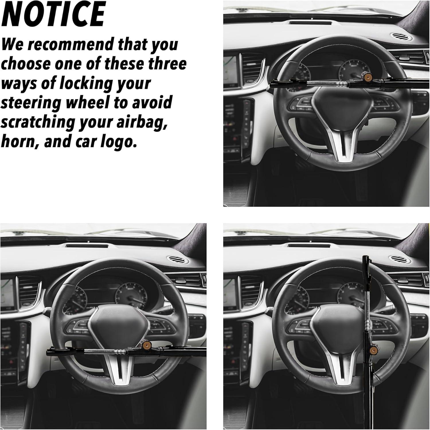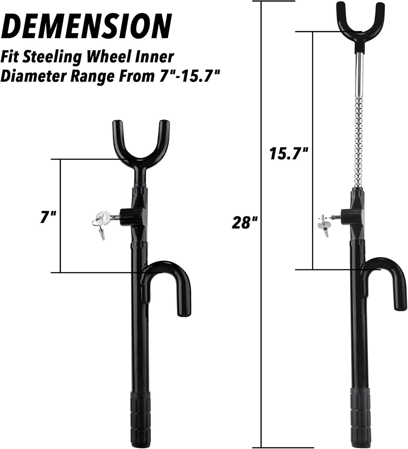 ADJUSTABLE LENGTH – Our anti theft steering wheel lock fits for any car whose steering wheel inner diameter range is within 7″-15.7″. Please measure the distance before buying.