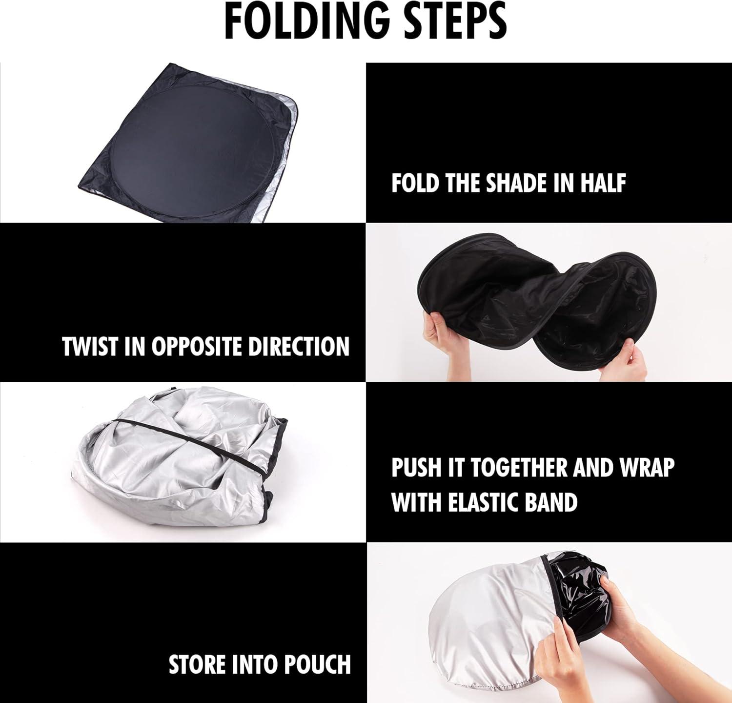 Windshield shade is made of high-quality, durable 210T UV refective material, ensuring interior protection and keep your vehicle cool.