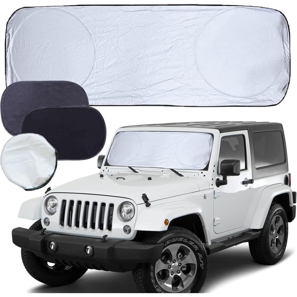 Cartman's sun shade set include: 1 windshield shade 63″x34″, 2 side window shades 20″ x 12″, and a free storage pouch.